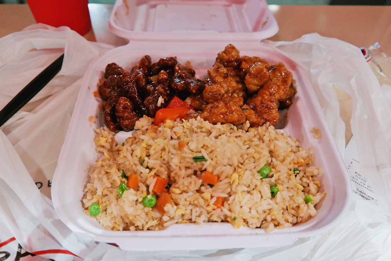 원플레이트에 프라이드 라이스, 오렌지 치킨, 베이징 비프를 추가했다.