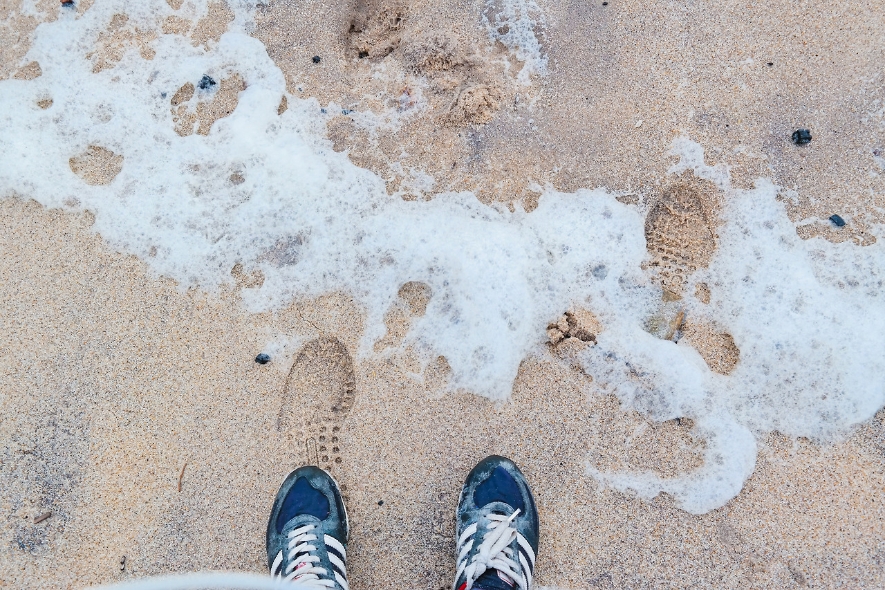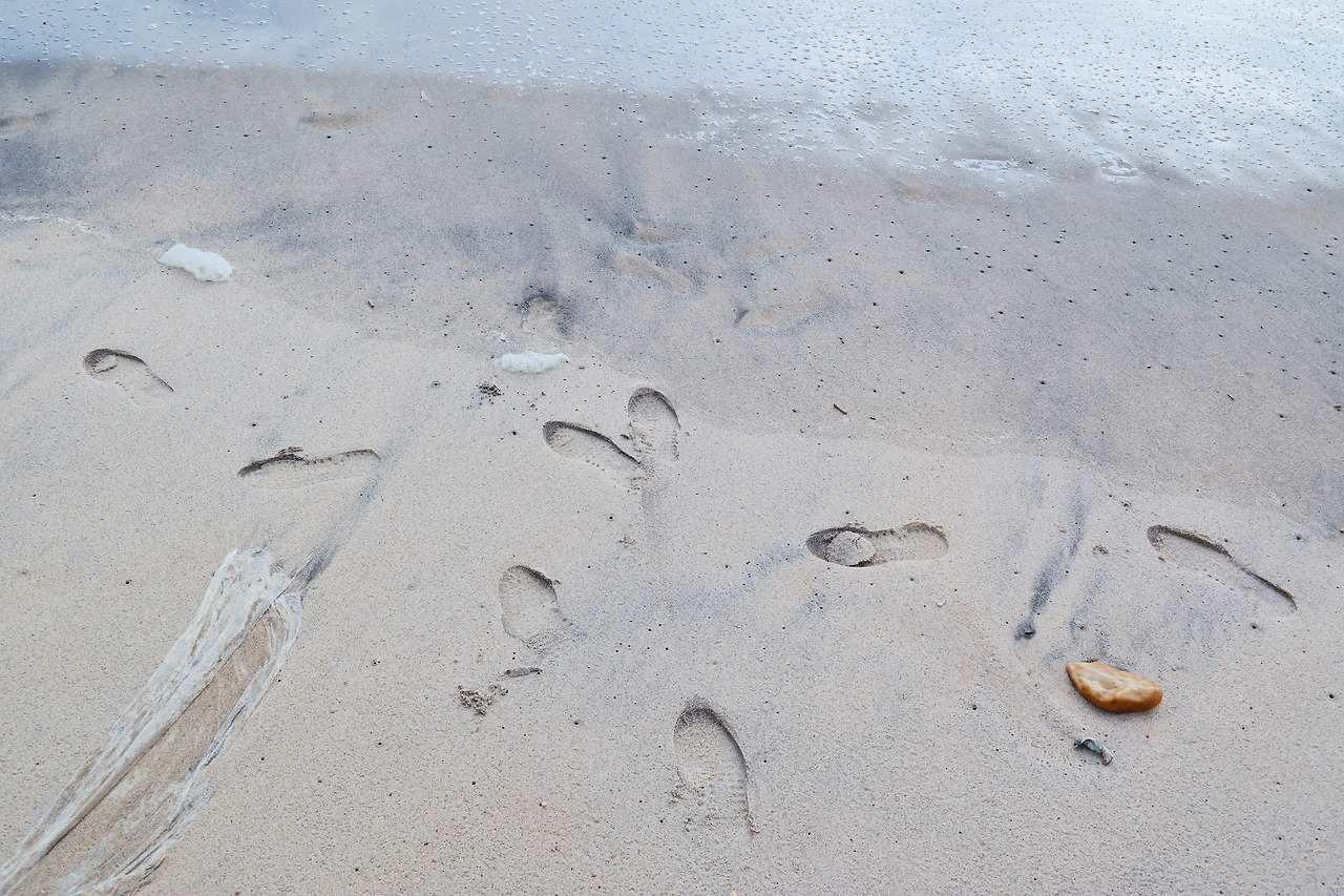 한 30분 정도 나무 계단에 앉아있었다. 들이치고 물러나기를 반복하는 파도의 하얀색 포말만을 바라보았다. 영화 사운드트랙 중 Everybody's Gotta Learn Sometime을 들었다. 그러다 마음이 동해 갈색 모래 위에 영화의 제목도 적어봤다. 해안선을 따라 걷다가 부드럽게 다듬어진 검은색 바다 돌멩이도 발견.