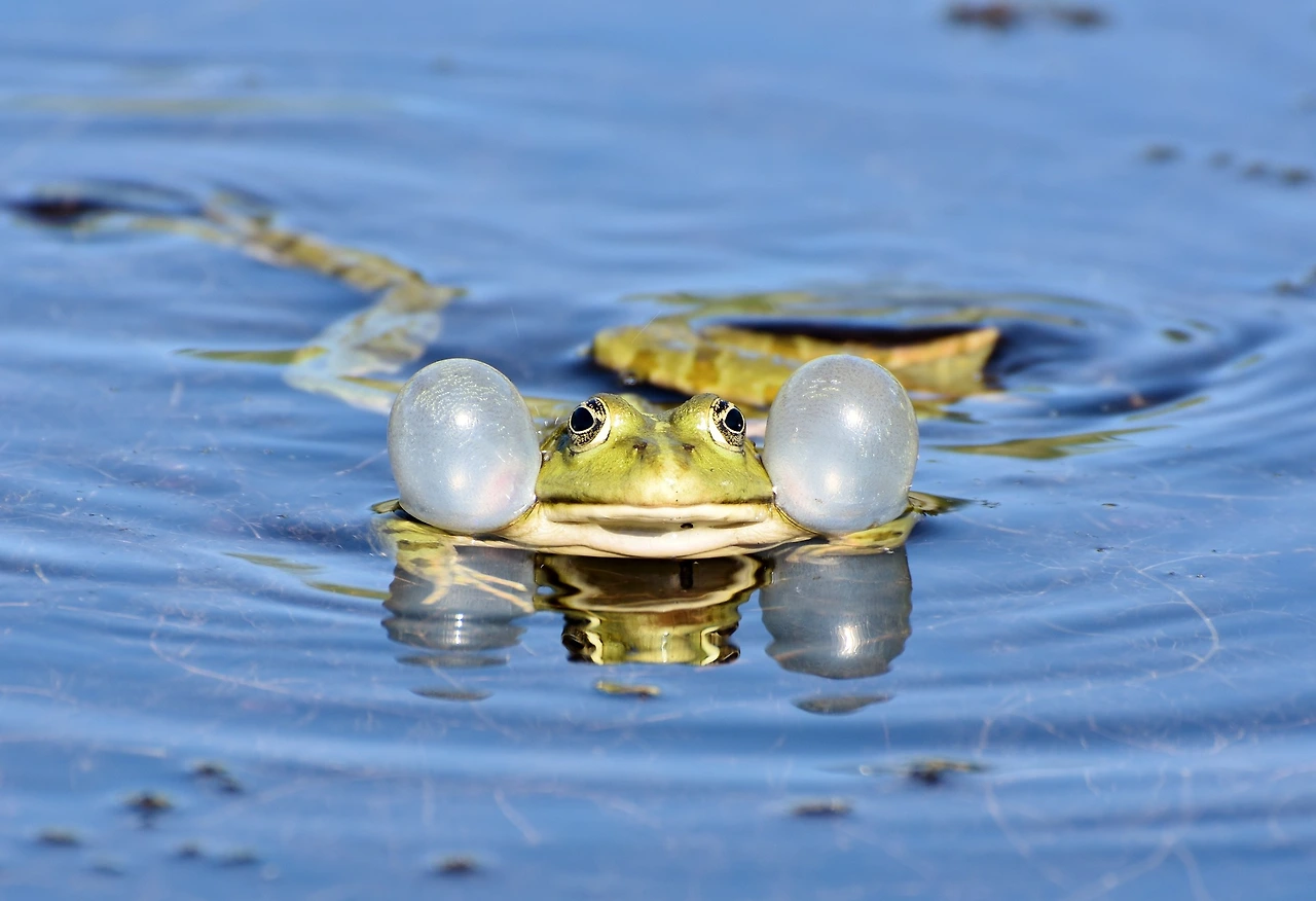 개구리는 물속에서 개굴개굴 노래를 불러요.