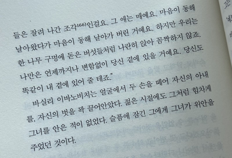 결국 파벨은 바자로프와의 결투로 생사를 넘나든다. 신념에 따른 행동으로 죽음을 맞이할 뻔한 파벨은 심경의 변화를 겪고 모르쇠로 일관하며 완강히 부정했던 페네치카와 니콜라이의 사이를 인정한다. 그런 파벨을 저자는 '이미 죽은 사람'이라고 표현하는데, <아버지와 자식>에서 진짜 죽음을 맞이한 인물 또한 죽음을 극복했다면 다른 삶을 살았을까? 싶은 생각에 잠겼다. 투르게네프는 두 죽음(가치관의 소멸, 영혼의 소멸)을 인간은 죽기 전까지 성장하는 존재임을 알려주는 도구로 이용한 것 같았다.