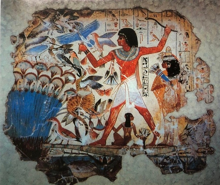 1820년 이집트 테베에서 발견된 네바문의 무덤 벽화<수풀 속의 새사냥> 에서 네바문(Nebamun)의 모습을 살펴보자. 그림 속 주인공인 새사냥을 하고 있는 네바문이 가장 중요한 인물이기에 가장 크게 그려져있다. 얼굴과 다리는 측면을 향하고 있고, 어깨, 가슴과 팔, 눈은 정면을 향하고 있다. 이것이 '정면성의 법칙' 인데, 이 원리에 의해서 인물의 가슴은 전부 감상자를 향하도록 묘사되었다. 옆을 바라보고 있는 사람의 얼굴에서 눈을 그리면 우리는 눈의 정확한 모습을 알아낼 수 없다. 하지만, 고대 이집트인들처럼 옆을 바라보고 있는 얼굴 위에 정면의 눈을 그린다면, 그 인물의 눈이 어떻게 생겼는지 정확히 볼 수 있다. 결국 각각의 대상들은 그 특징이 가장 잘 드러나는 각도에서 묘사되었다. 또한, 그림 속 인물의 가슴이 항상 정면을 바라보고 있다는 것은 감상자와의 직접적이고 구체적인 관계를 표현하고 있다고도 볼 수 있다. 이것은 고대 이집트인들이 인간의 신체에서 가장 중요하게 생각한 기관이 심장이었던 것과도 무관하지 않을 것이다. 하나의 그림 속에 정면에서 바라 본 시점과 측면에서 바라본 시점이 동시에 그려졌다는 점은 머나 먼 후대의 화가 피카소의 입체파를 연상시키기도 한다.