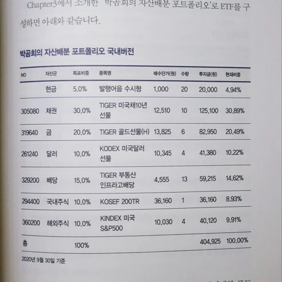 가격변동으로 인해 처음 생각했던 포트폴리오 비중이 달라진다. 그래서 1년에 한 번은 리밸런싱을 해주어야 한다. 주식의 비중이 오르고 금의 비중이 줄었다면 주식을 팔아 금을 사야 한다. 그 시기는 1년에 한 번이면 충분하다고 하니 아주 좋다. 단, 주식시장의 급락을 불러온 코로나 사태처럼 급격한 변동이 있을 때는 리밸런싱을 진행하는 것이 좋다고 한다. 이때에는 포르폴리오 비중이 낮아진 주식을 다른 자산들과 맞춰주어야 하기 때문에 다른 자산을 팔아 가격이 떨어진 주식을 저가 매수하면 된다.