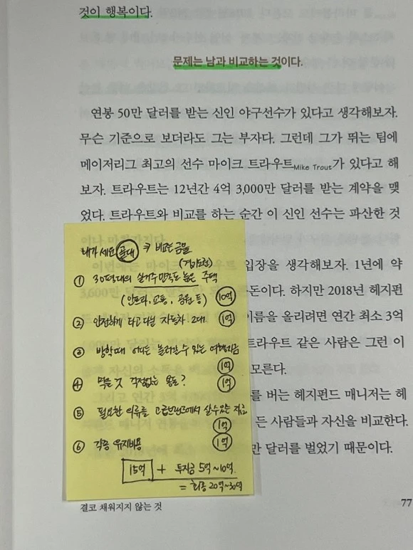 (재작년에 이 부분을 읽으며 적어두었던 메모인데, 이상한 계산법이지만 그래도 이렇게 적어두면 가끔 다시 책을 볼 때 재밌다.)