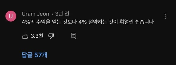 저축이 되지 않는 상황에서 투자를 감행하는 것 자체가 어불성설이다. 저축이 되어야 유의미한 시드를 굴릴 수 있다. 예전에 경제 인터뷰 유튜브에 중독되어 모든 영상을 시청하며 열심히 댓글을 달고 읽으며 소통하고 다니던 기억이 있다. 그때 마주친 댓글이 아직까지 떠오른다.