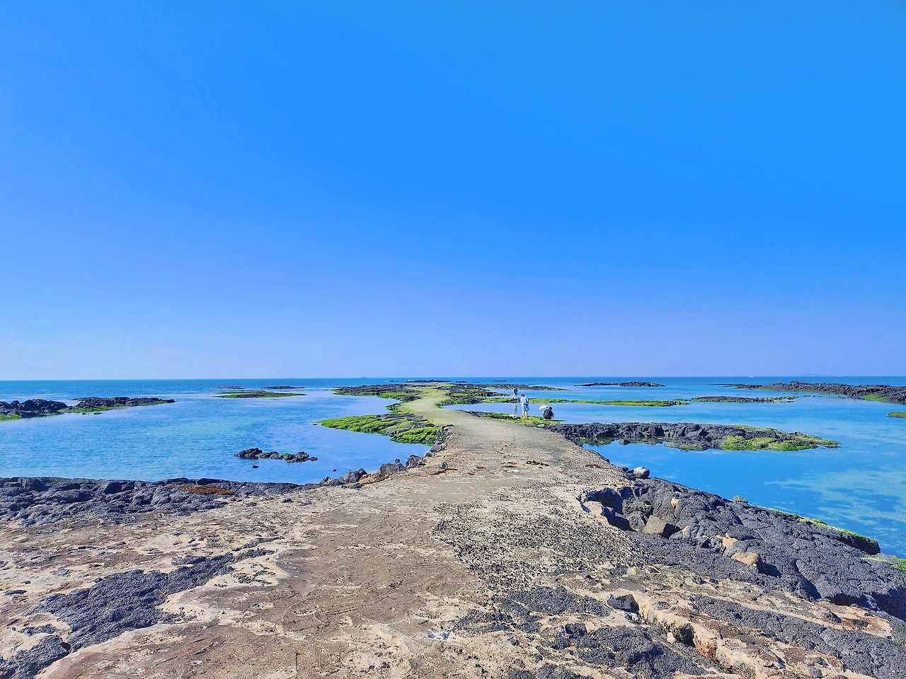 요즘 뜨는 스팟 중에 한 곳인 싱계물공원이다. 하루 두 번 바닷물에 다리가 잠기면 인생샷을 만들어 주는 곳인데 다리 말고도 작은 폐허처럼 있는 숨겨진 공간에서 보는 제주의 바다 모습은 어쩌면 조금은 탁하기도 하고 공허하기도 한 기분을 느끼게 한다.