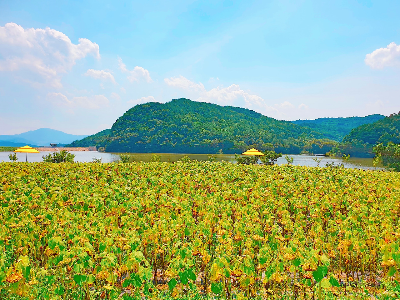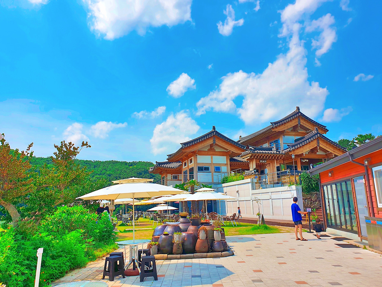 불국사를 갔다가 여름에 대표적인 해바라기를 보러 가는 것은 어떨까? 이 카페 같은 경우 호수 뷰와 해바라기의 싱그러움을 모두 느낄 수 있는 곳이다. 카페도 한옥 외관이기 때문에 이색적인 풍경을 눈에 담을 수 있는 곳이다. 내가 갔을 때는 한 여름이었는데 작년 여름 비가 너무 많이 와 해바라기가 뜻하지 않게 너무 빨리 시들었었다. 이 많은 해바라기들이 고개를 들고 마중해 줬다면 좋았겠지만 그래도 다음 해바라기를 기다리며 먼저 인사한 해바라기를 보고 돌아왔었다. 불국사 가는 길에는 바실라 카페 말고도 함양집, 산드레, 진가 성찬? 등의 한정식, 육회비빔밥 등 맛집이 많으니 식사를 하고 카페를 가도 좋을 것 같다.