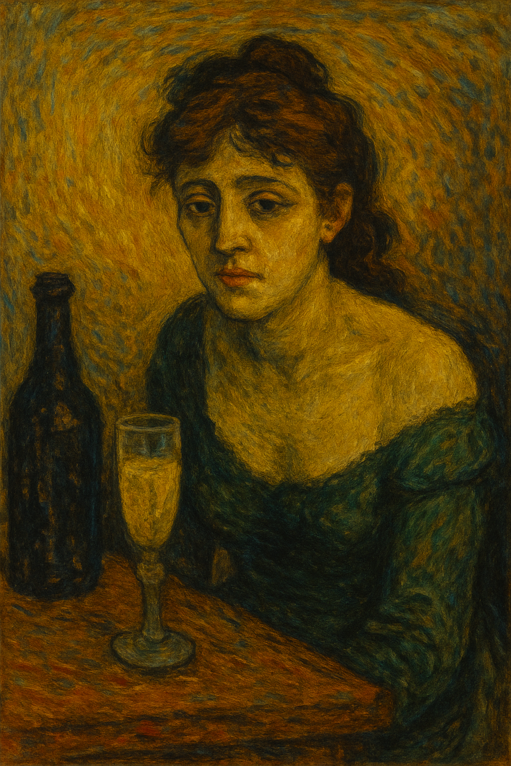 "모델은 극장식 식당에서 일하는 아가씨네. 내가 찾던 에케 호모 같은 표정이었어. 하지만 그녀의 표현을 최대한 사실적으로 묘사하면서도 내 나름의 생각도 충실히 반영하려고 노력했지. 그녀가 우리 집에 왔을 때는 밤새도록 일에 시달린 듯한 모습으로 딱 그런 분위기의 말을 했어. '전 샴페인을 마시면 기쁘기보다 오히려 매우 슬펴 저요.'라고 말이지.