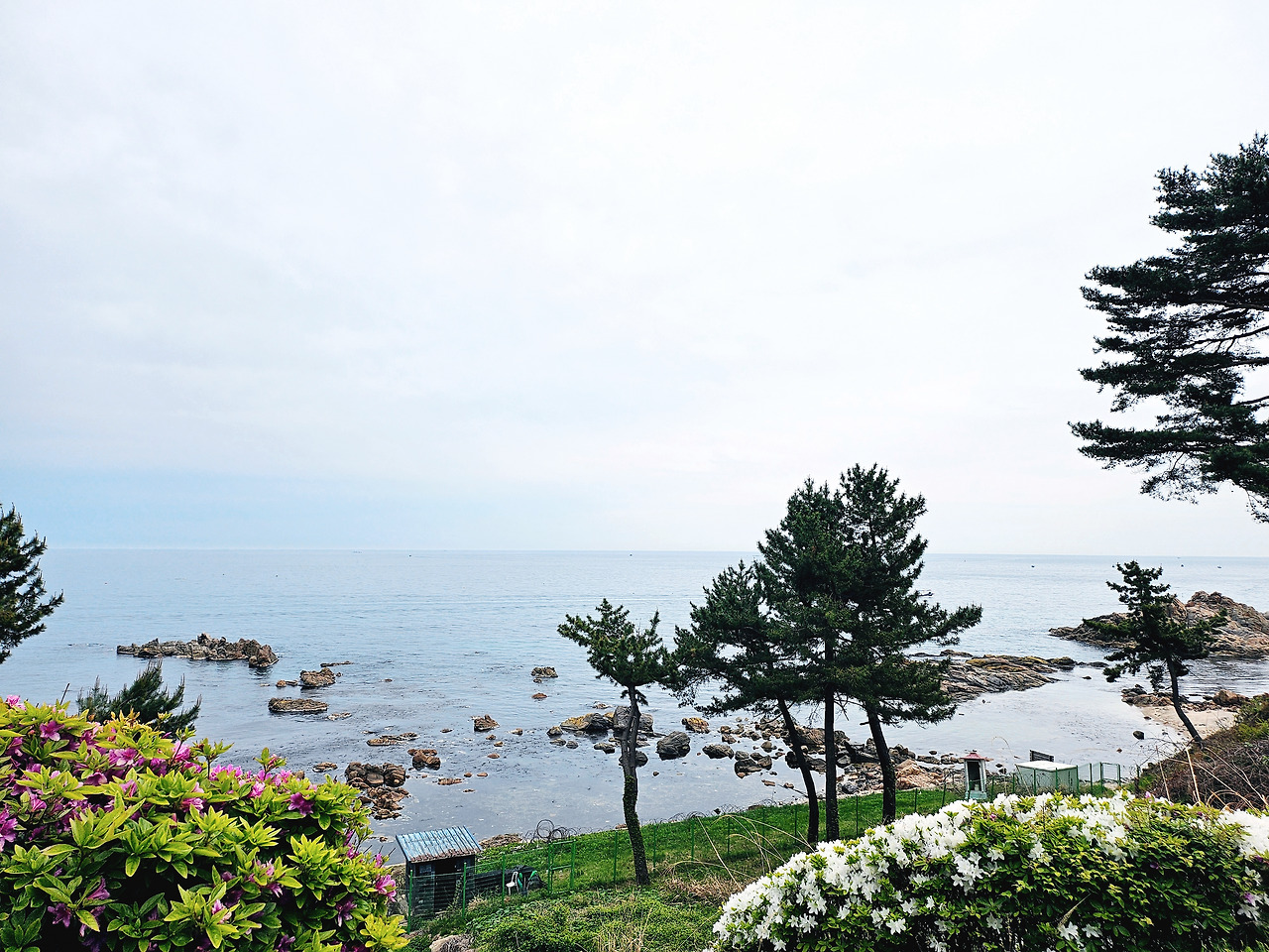 낙산대에서 차로 20분. 하조대 해수욕장 앞 카페 '더 스탠드'에 들렀다. 아직 쌀쌀한 봄날이라 서핑을 즐기는 이들은 없었다. 하지만 바다는 눈과 귀로 맞이하기에 딱이었다. 동해의 깊고 우람한 매력은 닳지 않는다. 아야진과 속초, 경주에 이어 양양도 여전히 그 아름다움을 선사해 줬다.