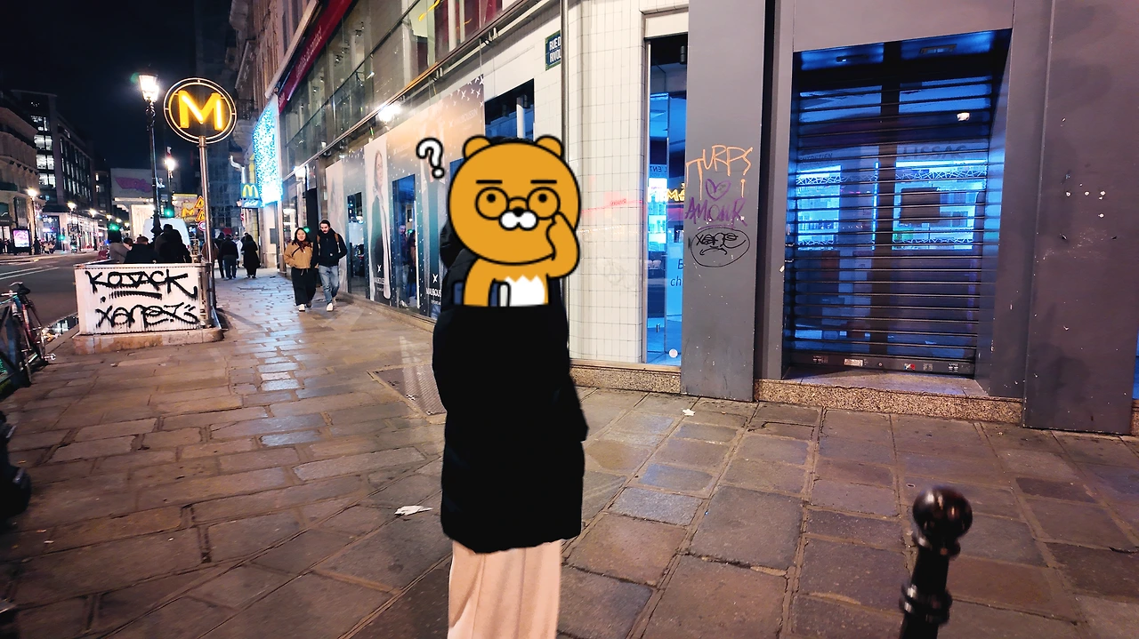 키오스크로 결제를 하려는데, 또 위기에 봉착했다. 카드 주입구부터 언어 선택까지 한참이 걸렸다. 핸드폰을 꺼내 챗GPT에게 물어보다가 겨우겨우 메뉴를 골랐다. 직원과 의사소통이 잘 되지 않아 음료도 따뜻한(?) 걸 가지고 와 버렸다. 맛은 신기했다. 느끼하면서도 오묘한 식감. 버거킹이나 맥도널드에서 먹었던 촉촉한 버거와 달리 찐득하고 축축한 버거였다. 느끼하지만 먹을만했다. 파리의 음식이 느끼하다는 말이 이런 건가? 싶었다. 하지만 배가 많이 고팠기에 남기지 않고 먹었다. 그녀가 남긴 것까지.