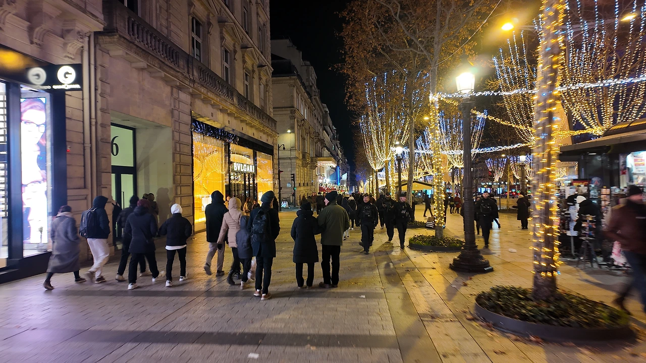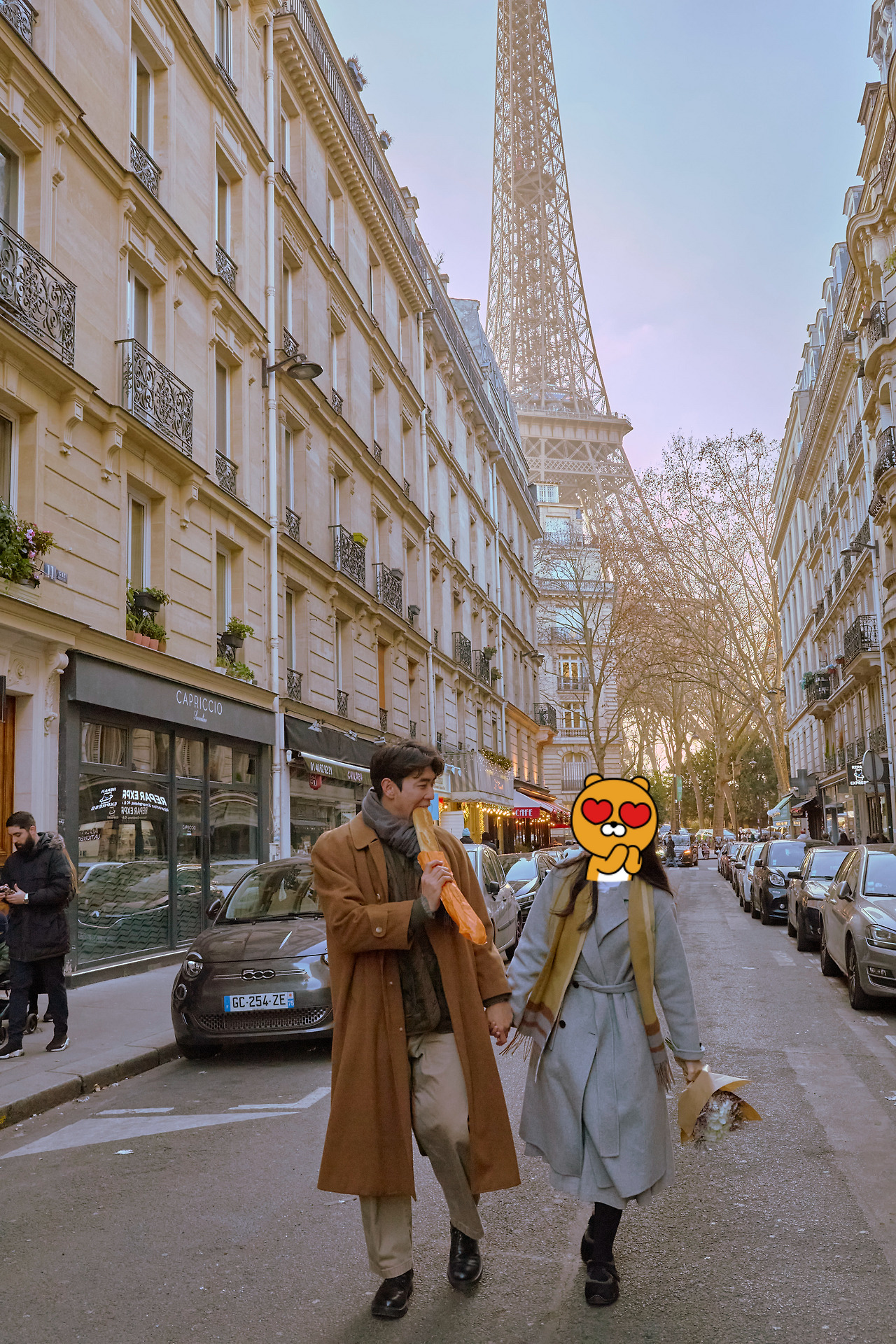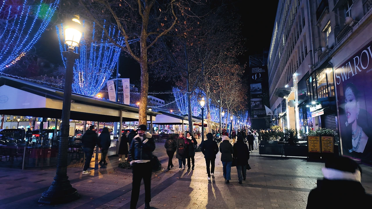 개선문을 등지고 샹젤리제 거리를 걸었다. 크리스마스 시즌을 맞아 수많은 인파가 거리를 매웠다. 춤을 추는 흑인 친구들부터, 꽁꽁 언 손을 녹이며 서로를 꼭 껴안은 아메리칸 커플, 히잡과 패딩으로 온몸을 싸맨 채 레스토랑에 앉아 있는 아랍인 가족까지. 그들 위로 가로수를 두른 전구의 불빛들이 환하게 빛났다. 샹젤리제 거리 중앙 한쪽에는 명품 브랜드 '루이뷔통'의 매장이 있다. 화려한 가방 모양으로 누가 봐도 루이뷔통 건물임을 알 수 있다. 2km여 걸었을까. 샹젤리제의 끝이 보였다. 뒤돌아보니 저 멀리 개선문의 자태가 보였다. 차도를 아슬하게 넘나들며 사진을 찍으려는 사람들, 그 사이에서 우리는 칼바람을 견디며 묵묵히 인증샷을 남겼다.