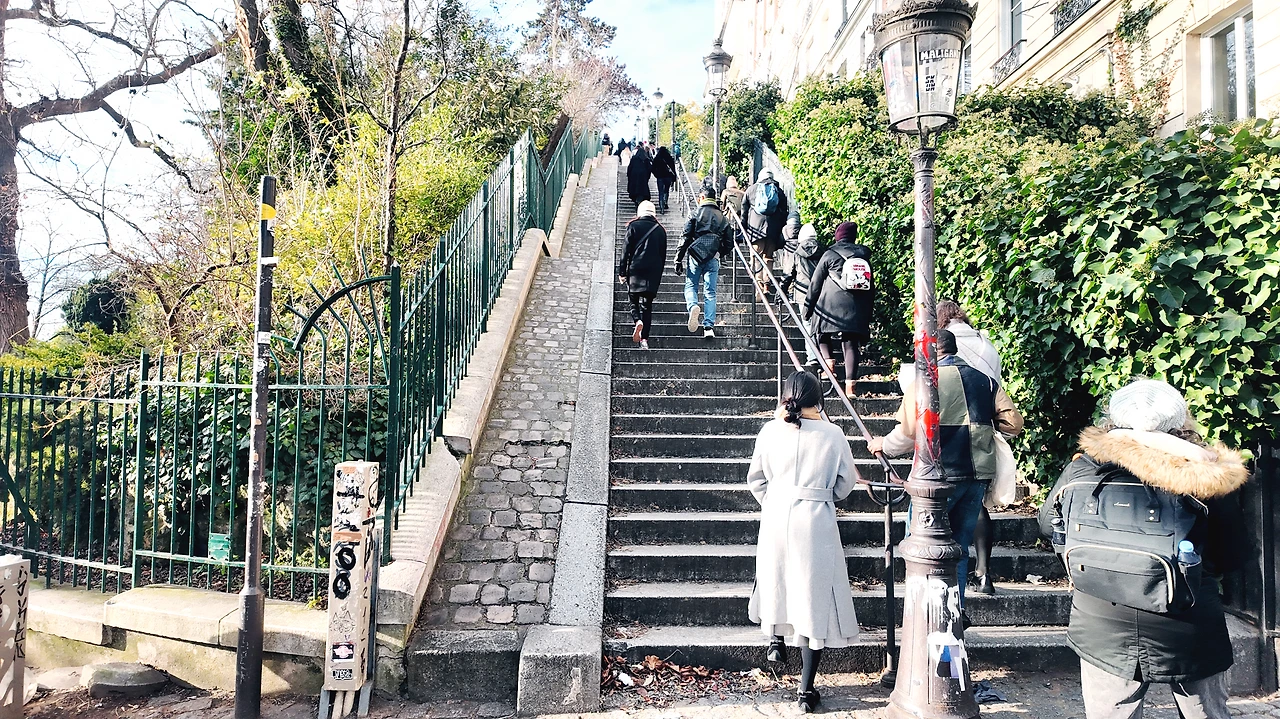 몽마르트르로 가는 길, 하늘이 정말 맑았다. 그 시간을 멈추게 하고 싶을 만큼 예뻤다. 골목과 계단, 주변의 건물이 한 폭의 그림처럼 느껴졌다. 쭉 뻗은 길 위로 펼쳐진 하얀 구름과 그 사이를 옅게 채운 색의 조화가 일품이었다. 몽마르트르에서 영감을 떠올렸던 예술가들의 심정도 이랬을까. 물론 그때의 삶은 지금과는 많이 달랐겠지만 자연은 늘 같은 풍경을 보여줬을 테니, 그들도 나와 비슷하지 않았을까 생각했다.