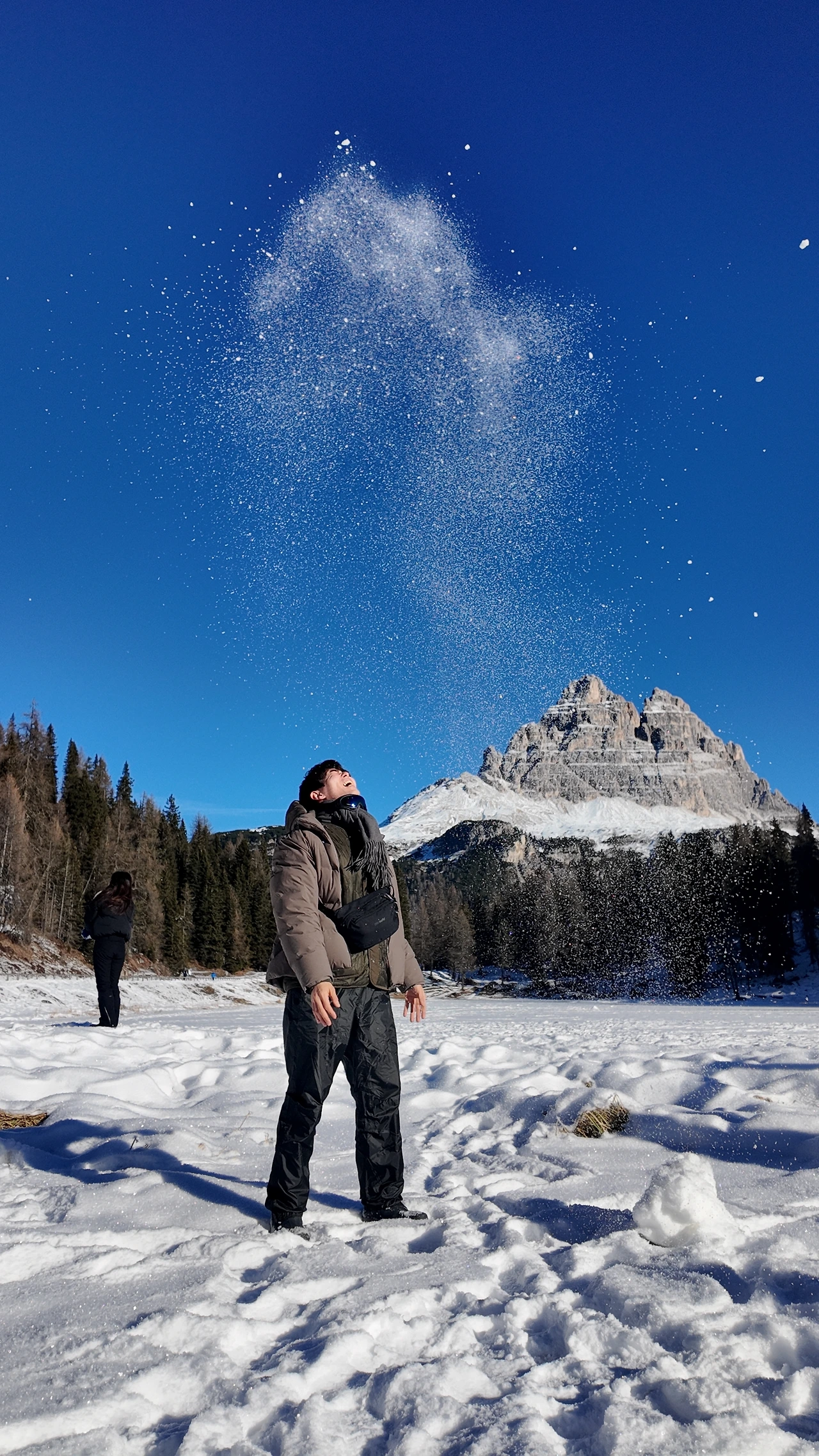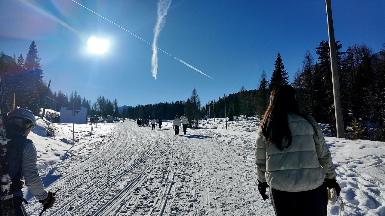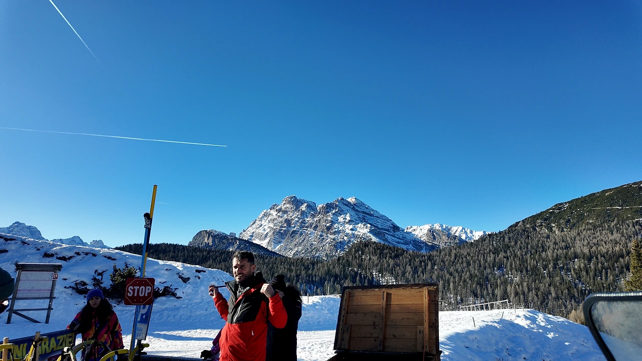 더 깊은 산속으로 들어서자 거대한 침엽수림이 나타났다. 크리스마스트리처럼 길게 솟은 나무들이 햇살에 몸을 말리고 있었다. 짙은 녹색과 회색이 묘하게 조화를 이뤘다. 돌로미티 투어의 핵심 중 하나는 '눈썰매'였다. 그녀도 나도 액티비티를 워낙 좋아하기에 결코 포기할 수 없었다. 여행 중 가장 즐거운 순간 중 하나였다. 전동 썰매 오토바이를 타고 해발 3000m선까지 올랐다.