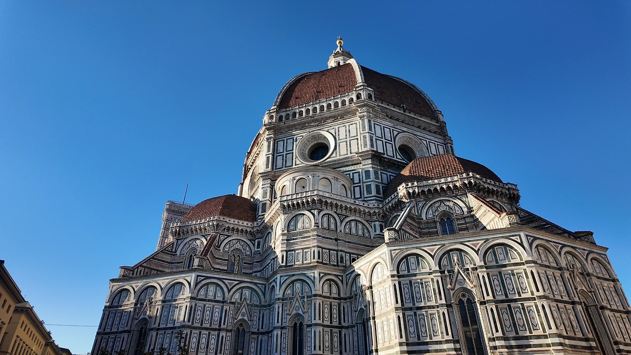 돔을 보고 있으면 웅장함과 아름다움이 동시에 느껴진다. 건물에 감정을 이입하게 되는 경우는 드물지만, 두오모는 다르다. 강한 햇살에 비췬 돔은 색이 바랜 연붉은 와인색을 띠고 있다. 예술가와 자연이 함께 빚은 술 같았다고나 할까. 꽃의 도시라는 명칭은 두오모를 두고 하는 말이 아닐까 생각했다.