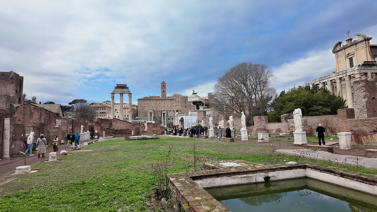 그녀가 가장 흥미를 보였던 곳은, 맨 아래 사진에 있는 여사제의 삶과 흔적이 남아 있는 '베스타 여사제의 집'이다. 여사제들은 베스타 신전의 불을 관리했다. 불이 켜져 있다는 건 로마가 살아있다는 의미로 이를 관리하는 이들은 로마에서 아주 존경받는 지위에 있었다. 하지만 순결을 유지해야 한다는 이유로 엄격하게 통제된 삶을 살았다고 한다. 그녀는 여사제의 삶이 굉장히 힘들었을 것 같다며 인상을 찌푸렸다. 존경도 받지만 한편으론 철저히 통제된 삶. 어쩌면 성직자로서 당연한 걸지도 모르지만, 내가 그런 삶을 살 수 있을까 상상해 보면 결코 쉽지 않을 것 같다.