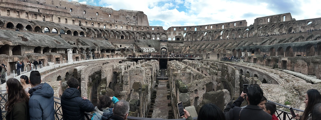 파리에 에펠탑이 있다면, 로마에는 '콜로세움'이 있다. 콜로세움이 대략 어떤 곳인지는 알고 있었다. 하지만 실제로 보니 생각보다 훨씬 더 크고 웅장했다. 이 큰 경기장에 모여 검투사들이 서로를 칼로 찌르는 걸 감상했다니, 상상이 되지 않았다. 영화 글래디 에이터에서 보았던 그 장면이 현실로 이뤄졌다고 밖에는 생각할 수 없었다.