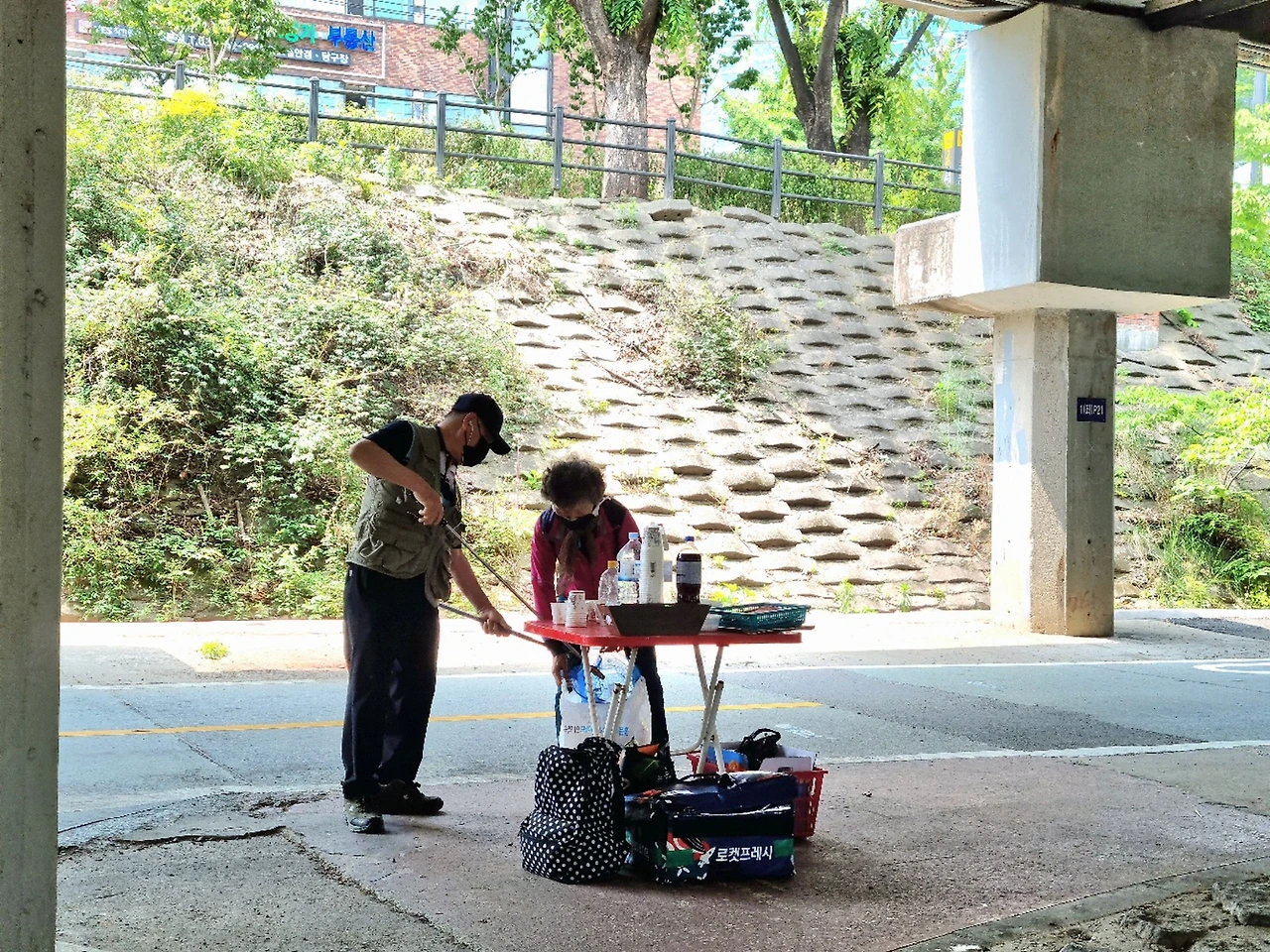 할머니는 도림천 근처에 간식 매대를 설치한 채 시간을 보내고 계셨다. 그는 지나가면서 쉬는 이들에게 물도 건네고 주변에 버려진 쓰레기들을 주웠다.