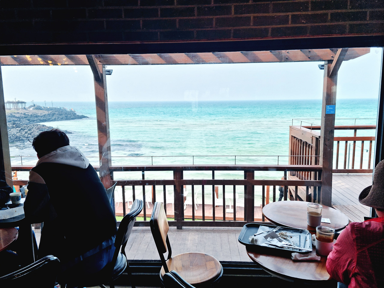(왼쪽) 제주 함덕 해수욕장 근처 카페 델문도에서 바라본 해변, (오른쪽) 서울 신대방역 근처 카페 탐앤탐스에서 바라본 도로
