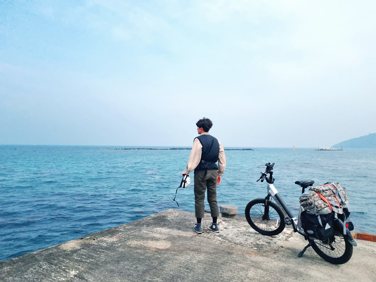 전기자전거의 대여료는 2박 3일에 75,000원. 자전거의 상태를 확인하고 약 30kg에 육박하는 배낭을 뒷좌석에 등에 묶었다. 사실 처음에는 배낭을 직접 매고 갈까 생각했지만 사장님께서 자전거에 묶는 게 훨씬 나을 거라고 알려주셨다. 역시 여행은 현지 베테랑의 말을 들어야 한다. 2박 3일 동안 녀석을 매고 갔다면 아마 어깨가 아작 났을 것이다. 꿀팁을 알려주신 것도 모자라 여분의 가방까지 제공해 주신 '상상하이킹' 사장님께 감사하다.