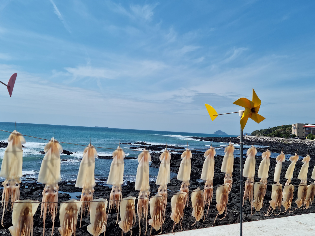 자전거를 타고 달리는 동안 왼쪽으로는 끝없는 바다가 펼쳐졌지만 반대쪽으로는 제주민들의 삶의 현장이 이어지고 있었다. 비닐하우스에서 작업을 하는 농민과 이주노동자들, 잡아온 고기를 옮기는 항구의 어민들, 미역과 한치를 말리는 주민들까지.