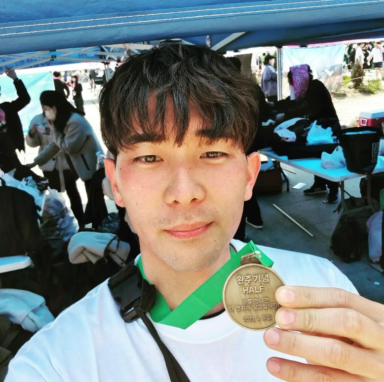 2023년 4월 9일 열린 '제10회 행복한 가게 마라톤 대회' 하프 코스 완주 기념사진