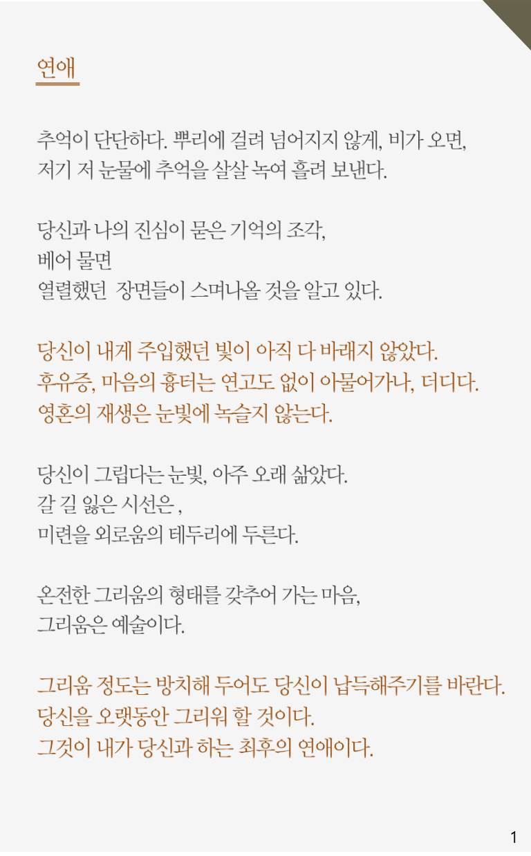 [오늘의 문장] 그리움은 최후의 연애이다.