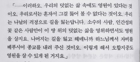 (경제적, 정서적) 독립을 한 후부터 먹고사는 일과 영혼(내면)을 가꾸는 일의 균형을 맞추는 것이 얼마나 힘든 일인지 어느 정도 깨달아서인지, 조르바의 가르침 속에서 삶의 치열함을 느낄 수 있는 대목이 많았다. 그래서 책장을 덮고 나서 나 또한 강한 인간이 돼야 한다고 다짐했다.