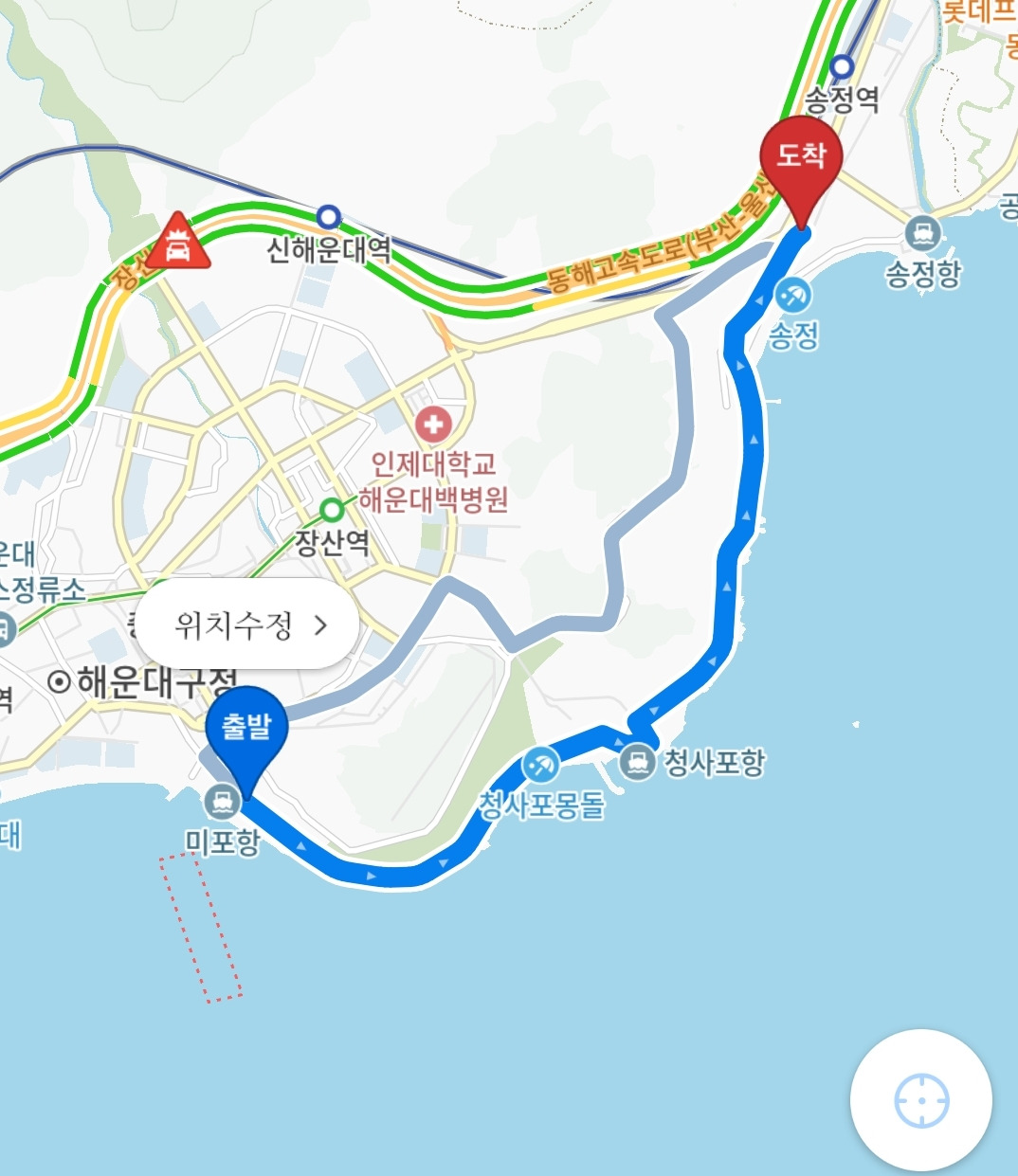 해운대 블루라인 파크는 부산의 바다를 즐기기에 충분했다. 그리고 무엇보다 인상 깊은 부산 아재의 한 마디도 나의 삶을 북돋아주기에 더할 나위 없었다. 잠시 청사포 정거장에 내려 바다를 감상하고 돌아가려던 차, 아무 때나 열차를 탈 수 있는지 몰라서 건널목에서 안전 관리를 하고 있는 직원 아저씨에게 물었다.