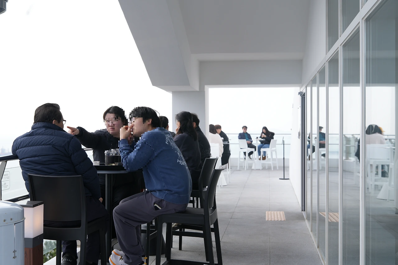돌아갈 시간이 얼마 남지 않아 부산의 향기를 남기기 위해 물빛이 잘 보이는 카페에 자리를 잡았다. 앞 테이블에는 한 젊은 커플이 앉아 있었다.