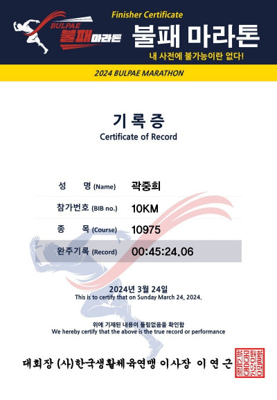어찌 됐든 러닝이 많이 사랑받는다는 측면에선 모두 좋은 일이다. 다음 대회 때는 조금 더 스퍼트를 올려 내 한계를 뛰어넘어 봐야겠다.
