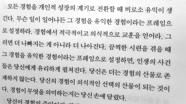 모든 경험에서 의미를 생각하고 깨달음을 얻으려 노력하는 일. 어쩌면 이는 인간이 가진 가장 신비한 능력이 아닐까 싶다. 의미 부여를 넘어 깨달음을 얻는다고? 놀랍지 않은가. 미래를 생각하고 희망을 가지지 않는다면 결코 할 수 없는 일이다. 긍정의 힘은 바로 여기서 나온다고 생각한다.