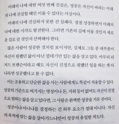미래에 대한 희망과 명확한 목표를 두고 사는 삶. 그 삶은 훨씬 단순하다. 그리고 단순하기에 만족감도 높다. 예전에는 왜 늘 미래가 기준이 돼야 하는지 몰랐다. 미래가 기준이 된다고 하면, 누군가는 미래를 위해 현재를 포기하는 것이 아니냐고 할 수 있지만 포기가 아니다.