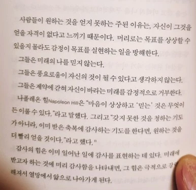 희망을 잃으면 모든 걸 잃는 것과 같다. 희망만이 미래를 겨냥하고 미래를 겨냥한 자만이 현실을 개선하기 위한 화살을 쏜다. 완벽한 자세가 아니어도 괜찮다. 삶의 태도는 도전하면서 개선되고 넘어진 후에야 바뀐다. 무너지지 않고서 우린 성장할 수 없다. 숱한 성공 서적에서 나오는 얘기지만 마음 깊이 이런 말들을 느낀 건 오랜만이다. 확실히 이 책에는 마음을 움직이게 만드는 무언가가 있다.