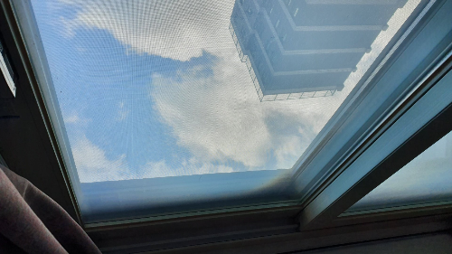 침대가 주무대인 집 안에 갇힌 생활이 계속된다. 그래도 봄날의 시간은 어김없이 가고 있다. 누워서 라디오를 듣다가 무심코 고개를 뒤로 젖혔다. 푸른 하늘에 뭉게구름이 봄날의 밖을 유혹하고 있다. 집안에 갇힌 자만이 느낄 수 있는 밖에 대한 그리움이다.