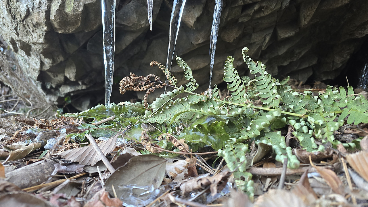 제주를 떠나 통영에서 맞이하는 첫겨울. 긴긴 추위가 봄의 길목을 막아선 듯, 2월 말의 계곡엔 여전히 고드름이 주렁주렁 매달려 있다. 봄을 지극하게 환대(歡待)하고 싶은 마음은 굴뚝같지만, 무릎 끝으로 스며드는 서늘한 바람에 아쉬움만 깊어가는 시간이다.