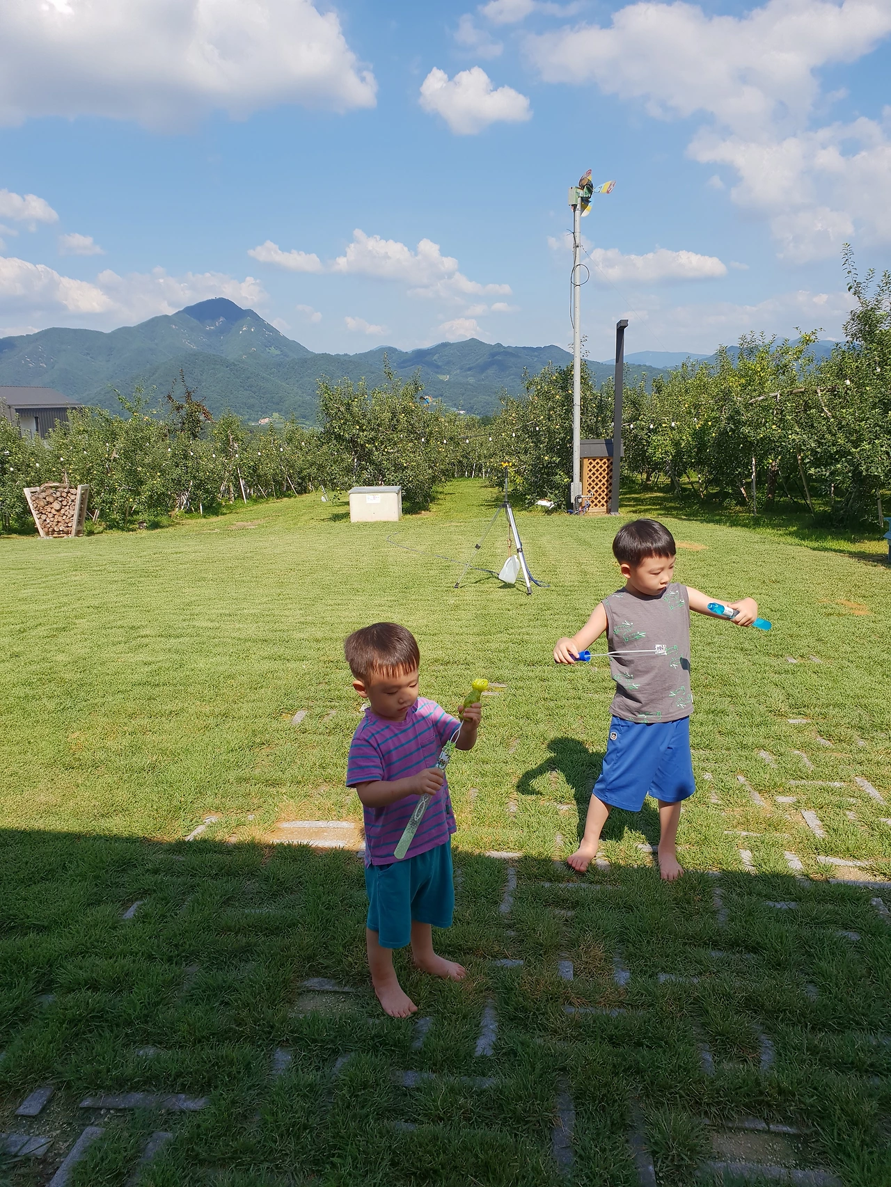 그리고 그 곳엔 생각지도 못한 아이들의 전용 수영장까지 있는 거였다. 너무 행복했다. 남아 둘은 그곳에서 기본 한 시간 이상을 놀아줬다. 펜션이라 내가 세 끼를 다 해먹여야 하는 부담이 있었지만, 그래도 자연 속에서 아이들이 마스크도 하지 않고 맘껏 놀 수 있고, 좋아하는 물놀이도 맘껏 할 수 있는 곳이여서 정말 좋았다. 이 여행은 따로 포스팅할 생각이다.