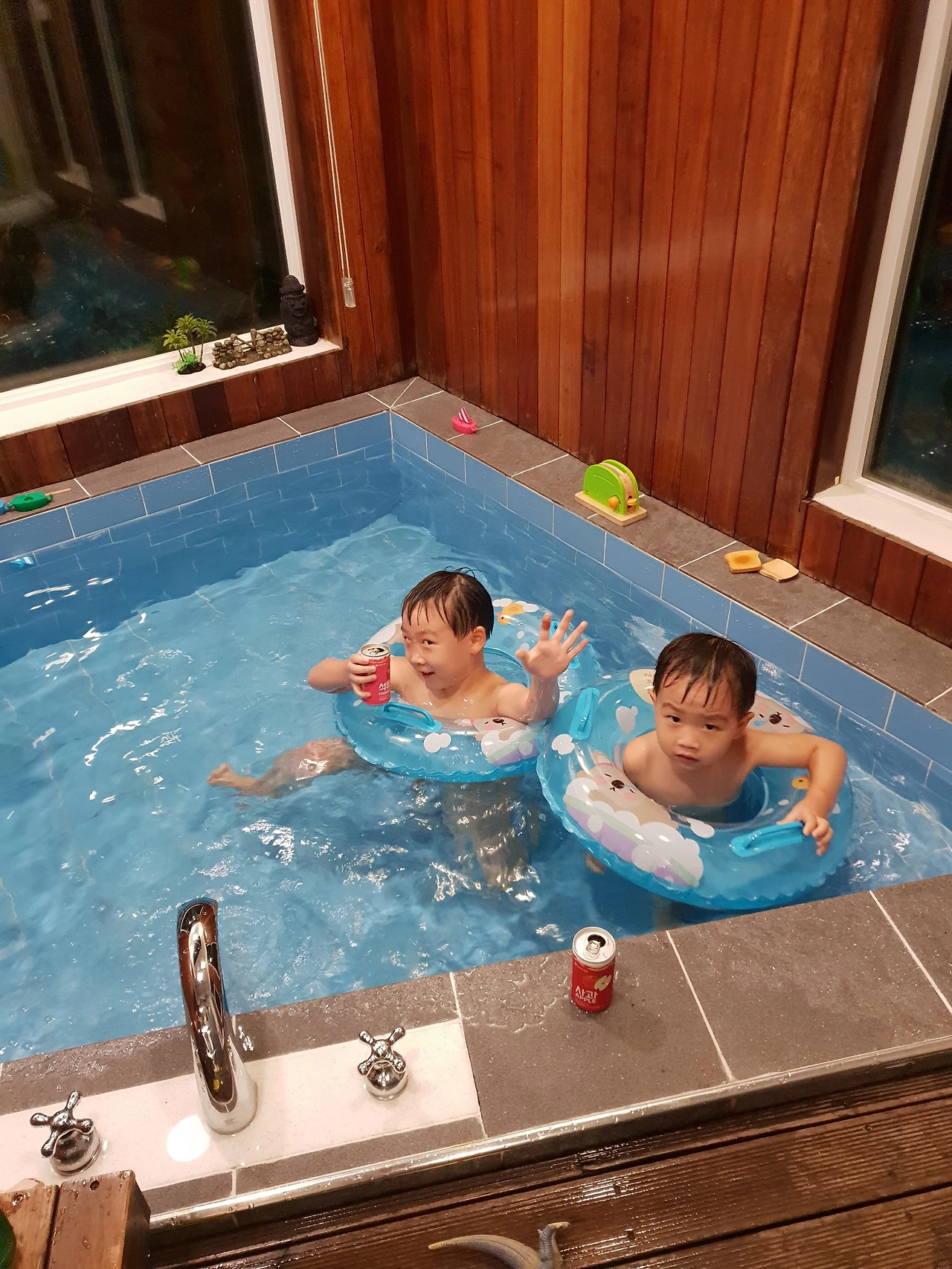 너무 마음이 편했는지 비바람이 몰아치는데 아이들 데리고 온수풀에서 수영도 했다. 여행을 떠나면 나는 겁이 없어진다. 아이들에게 모든 걸 다 체험하게 해주고 싶은 욕심에, 그 비바람에 수영복을 입혀서 수영을 했다. 아이들은 기억을 할지 안할지 모르지만, 나는 기억한다. 비오는날 내가 어린 아이 둘을 안고 온수풀에 앉아있었던 그날을.