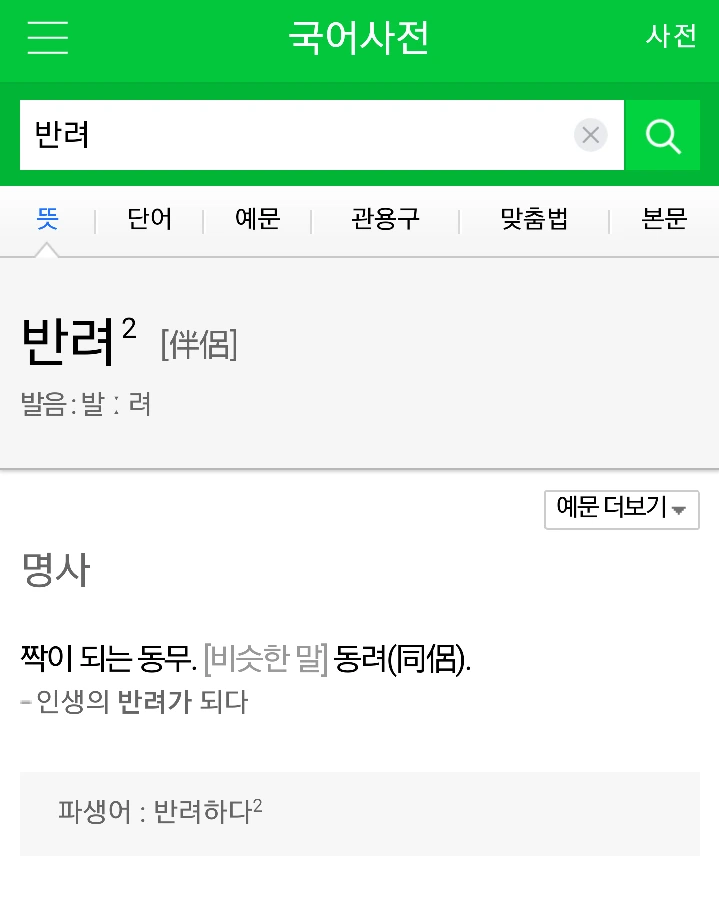 "동물이나 물품을 좋아하여 귀여워하거나 즐김", "좋아하여 가까이 두고 귀여워하며 기르는 동물" 등등. 동물을 마치 도구나 상품으로 여기는 듯한 뜻이 주를 이루고 있었다.