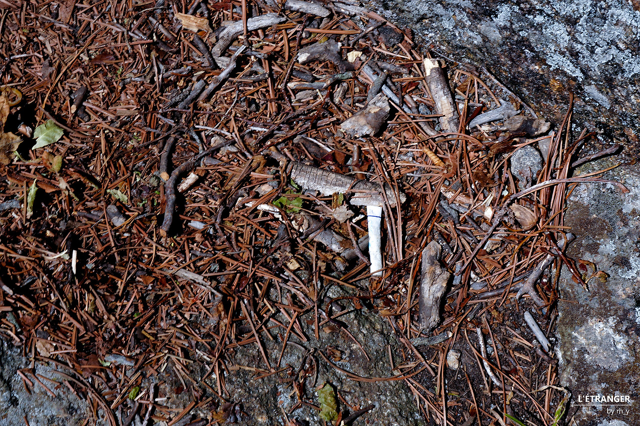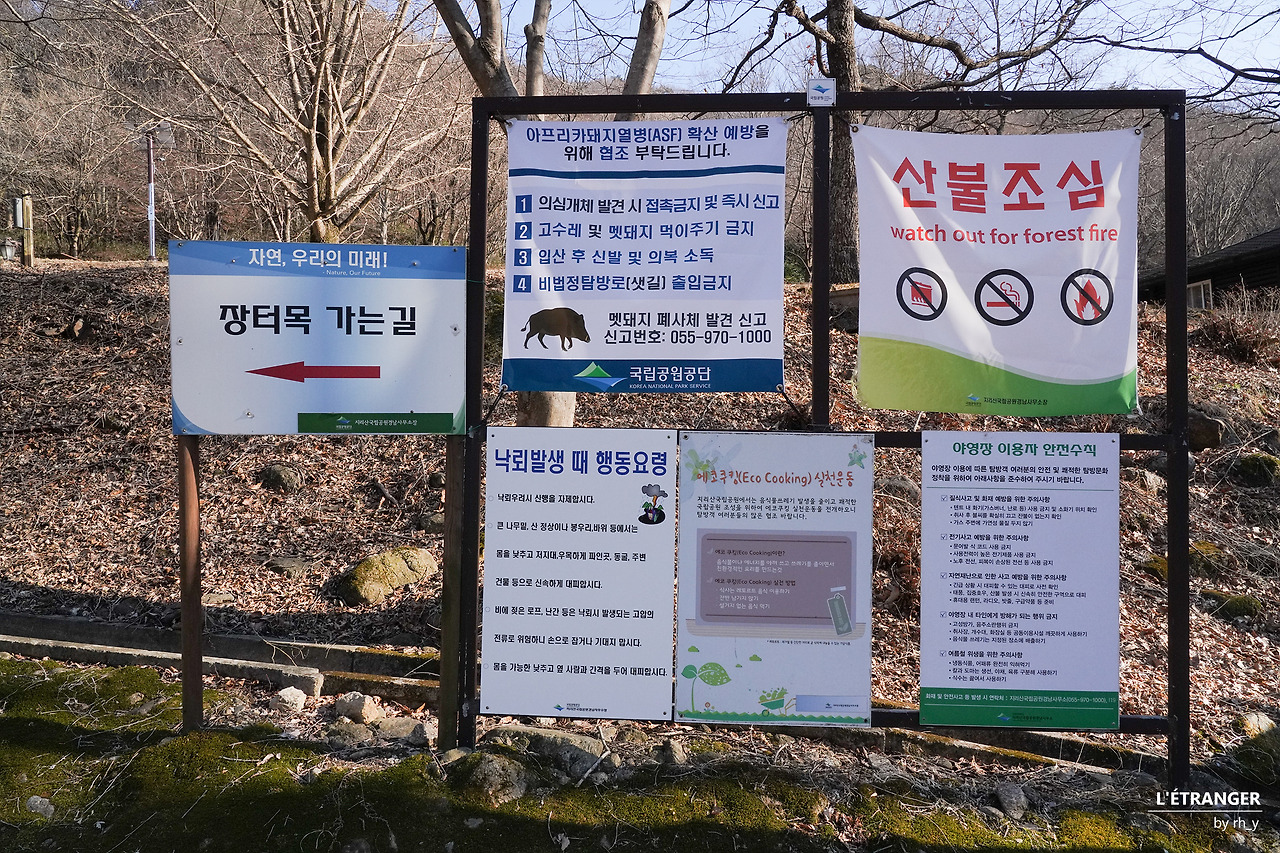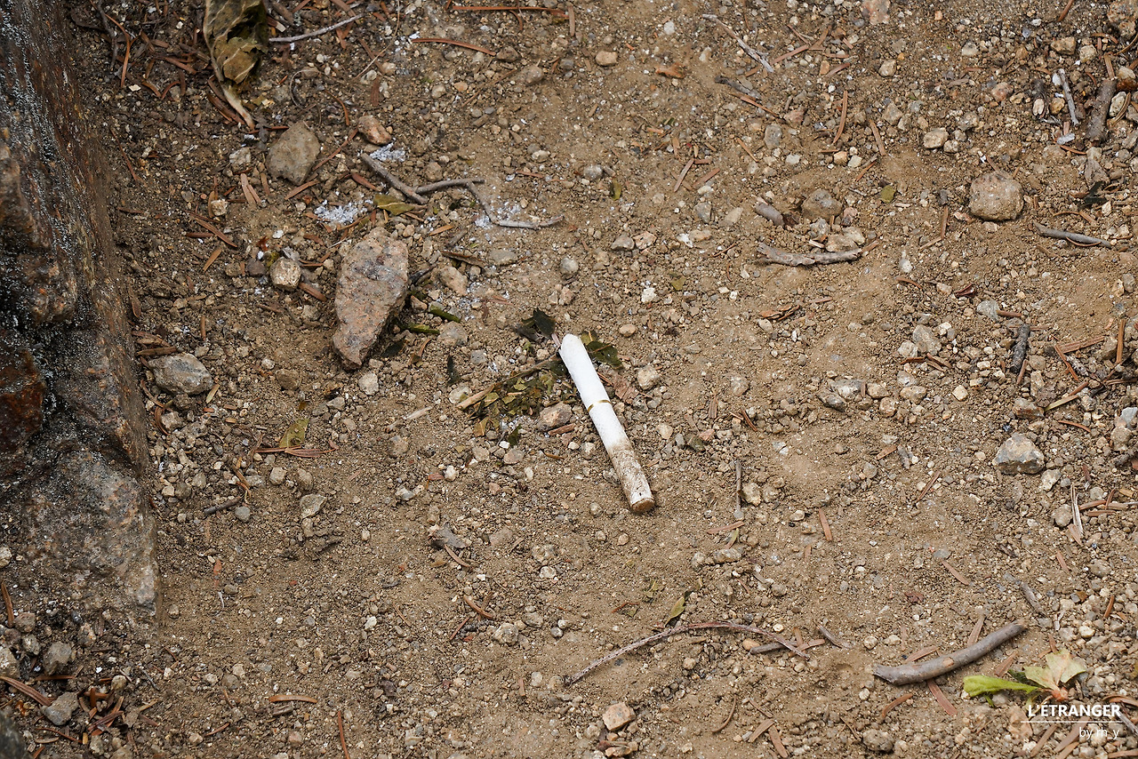 멀리 보이는 산불의 흔적산에 불을 들이면 불이 날 수 있다. 수도꼭지만 틀면 물이 나오는 도시가 아닌, 산에서 난 불은 끄기가 무척 어렵다. 지극히 상식적이다. 탐방로 구석구석에 설치된 현수막의 흡연/취사/샛길 탐방 금지와 같은 문구에서는 상식에만 온전히 의지할 수 없다는 불안이 묻어난다. 불안은 지나친 걱정에 그치지 못하고, 산의 쉴 만한 곳마다 심지어 푯말 바로 아래에서도 담배꽁초가 흔히 발견되는 현실이 되었다.