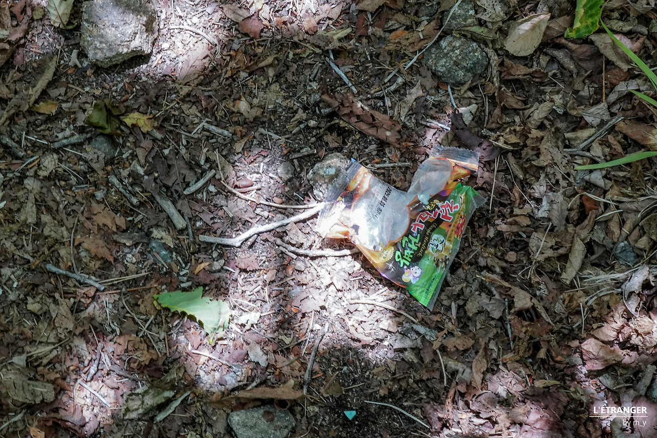 주 능선에서 벗어나 음양수를 지나서 대성골을 따라 걷는 길에서는 지표에 날리거나 가볍게 묻힌 쓰레기를 집기보다, 깊이 박힌 쓰레기를 발굴하는 것에 가까웠다. 쓰레기의 색이나 형태로 보아 최근의 것부터 연식을 짐작하기 어려운 오래된 것까지 다양하다. 플라스틱 재질은 연식을 불문하고 썩지 않고, 다만 찢어지거나 부서져 있었다.