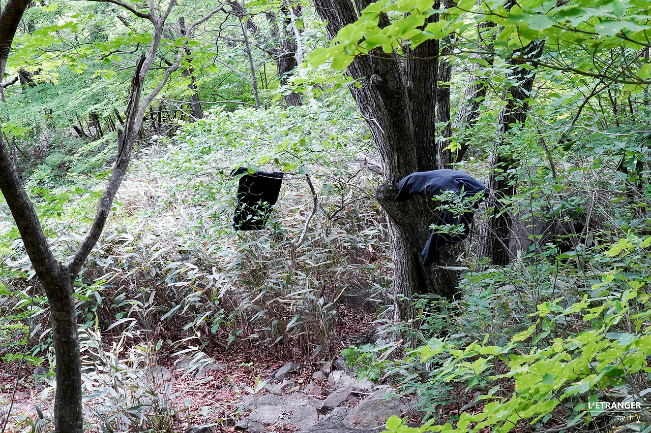 덧/ 멀리서 보고 곰이거나 덩치 큰 산짐승인 줄 알았는데, 나무에 벗어둔 사람 옷이었다. 계곡가도 아닌 산길 위에 웃옷과 하의, 신발을 벗어두고 어디로 사라진 건지 알 길은 없었지만, 혹여 숲에서 갑자기 튀어나올까봐 신경이 곤두선다. 그렇게 걸린 옷을 두 번 봤다. 괜한 일에 휘말릴까 싶어 쓰레기 주머니에도 담지 못했다.