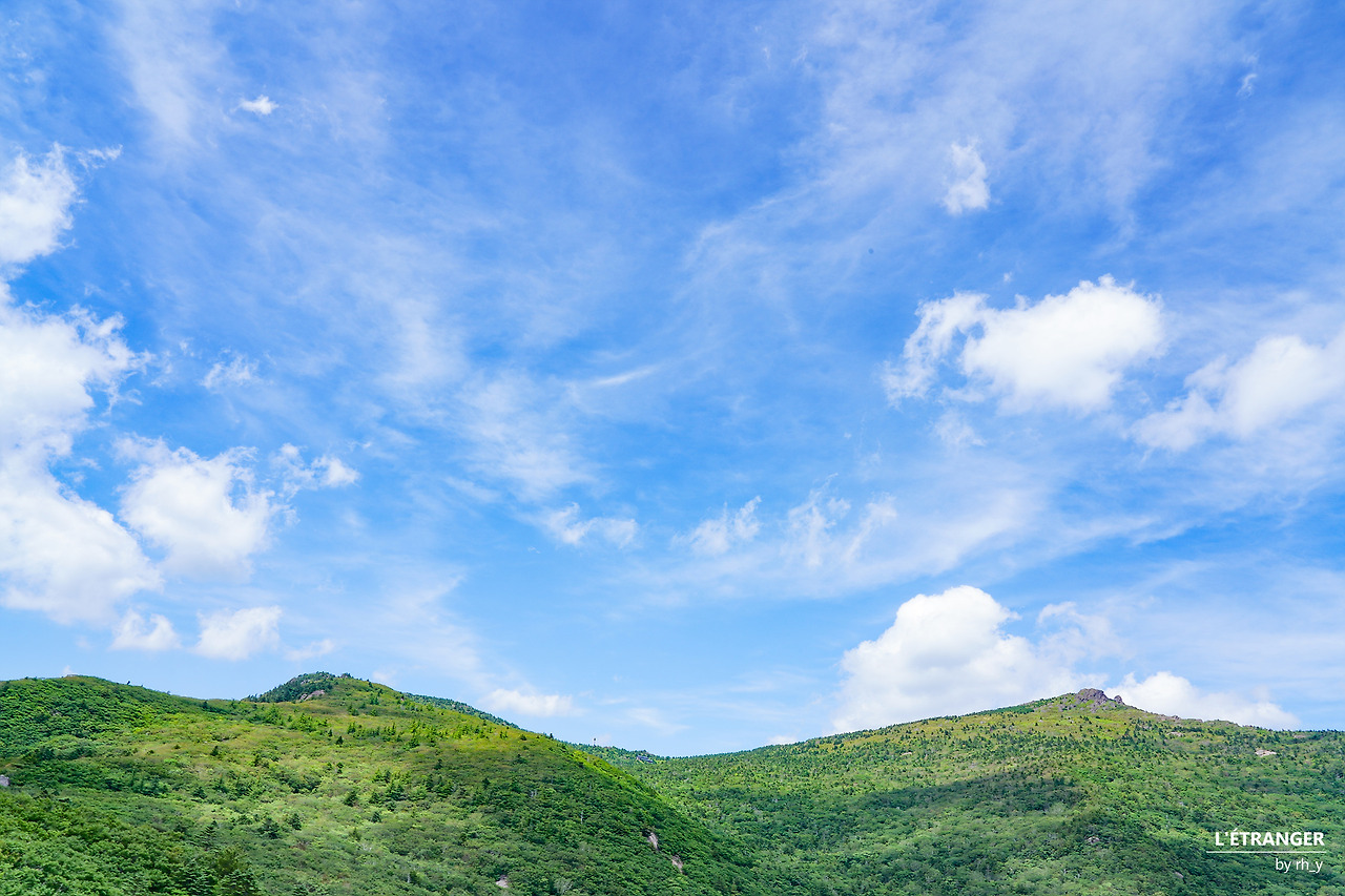 장터목대피소에서 세석대피소로 이르는 길 위의 파란 하늘에 흰 구름이 높게 떴다. 자연이 개별의 선호를 맞춰줄 일은 만무하고, 바람이 불면 부는 대로, 비가 오면 오는 대로 받아들이는 수밖에 없다지만, 오랜만의 구름에 발걸음이 자주 가다 선다.