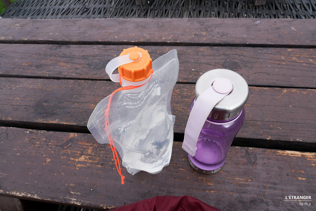 물병과 워터백. 물병이 비면 가방에서 워터백을 꺼내 다시 채운다
