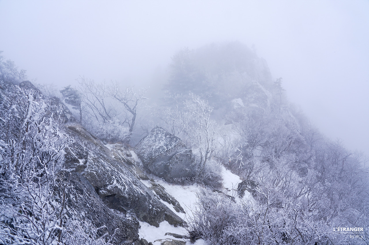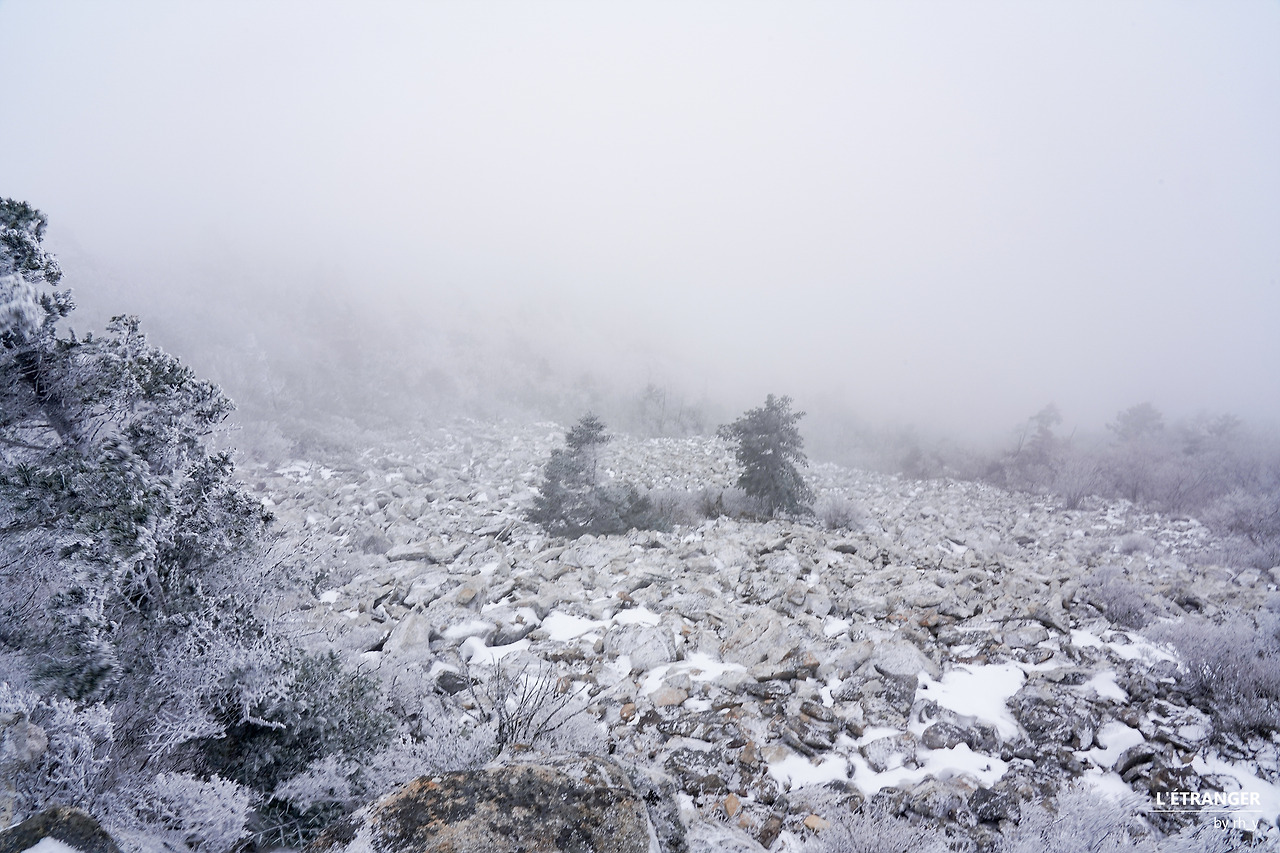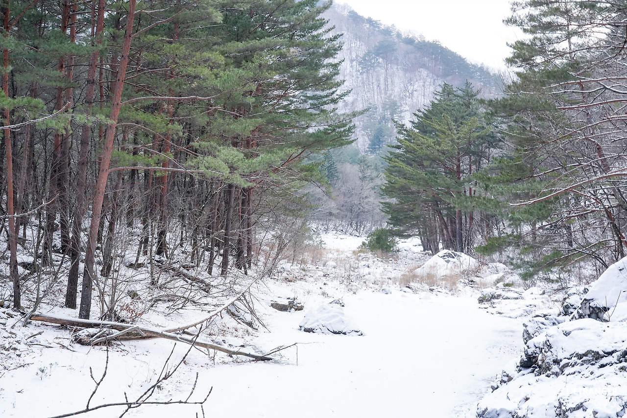 하늘을 가린 짙은 구름은 시선을 산으로 가둔다. 굽이굽이 이어진 산등성이를 바라보는 대신, 발길 끝에 닿은 산의 사정을 살피며 걸음을 옮긴다. 남쪽의 큰 산에는 한겨울이 되도록 눈 대신 비가 왔는데, 남한의 북동쪽에 위치한 이 산에는 다행히 눈이 쌓이고 녹기를 거듭했다. 1년을 기다린 산의 겨울은 점점 짧고 드물어진다.