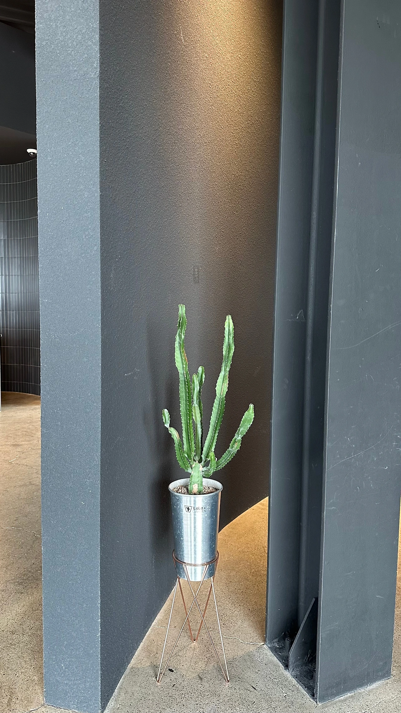 어두운 벽면 옆에는 선인장 하나가 놓여 있었다.