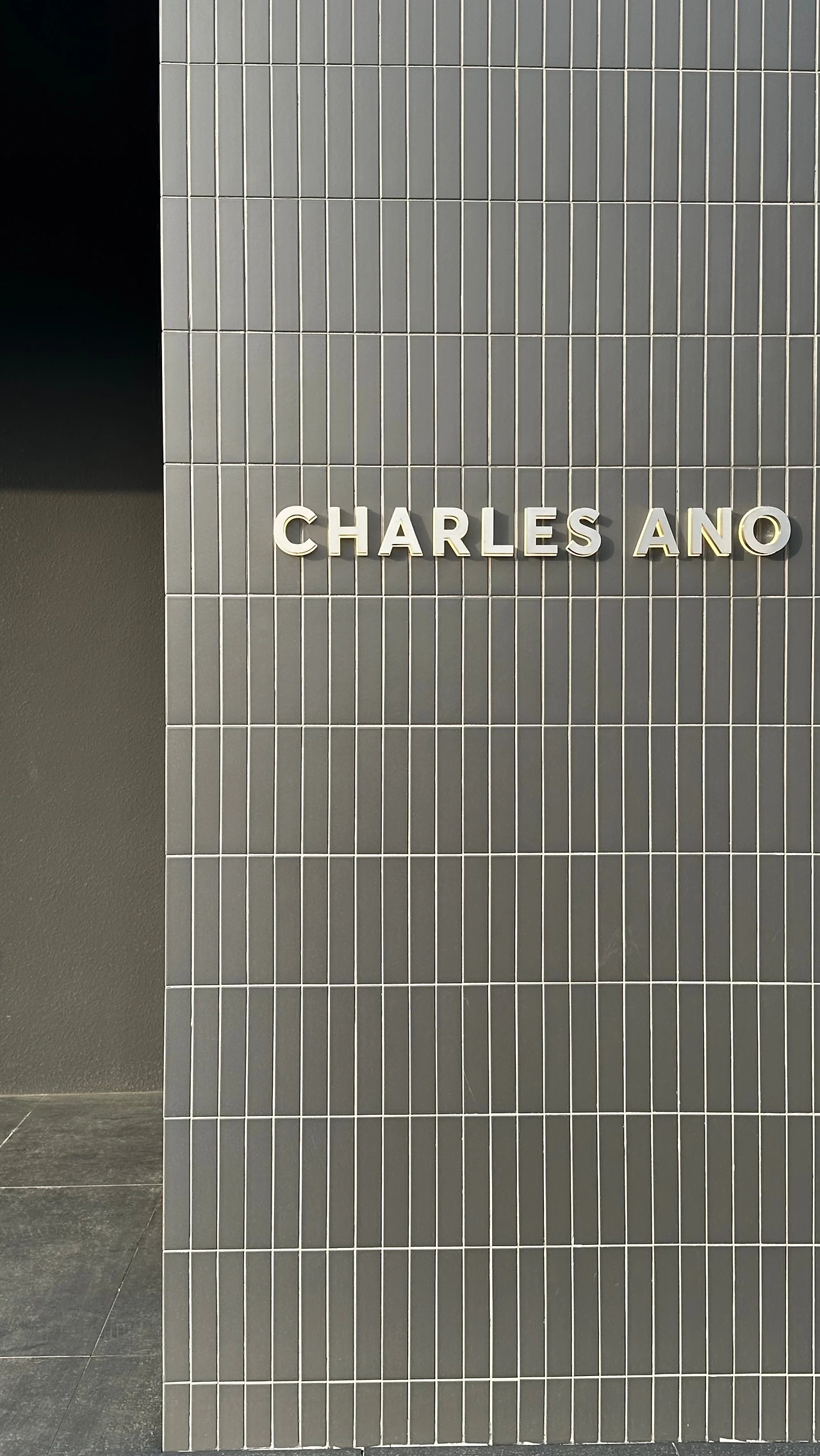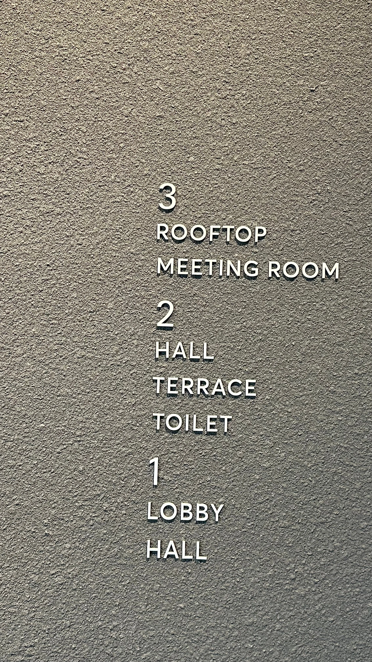 가까이 다가서야 보이는 세로 타일과 작은 사인,