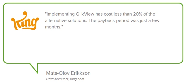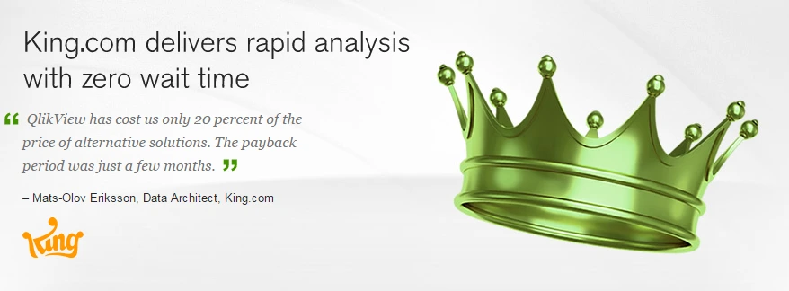 추가적으로 Qlik 도입으로 가장 Benefit은 서로 다른 시스템의 다양한 데이터 소스 추출/취합하여 통합 분석이 가능하게 되었다는 것입니다. King.com의 Mats-Olov Eriksson (DW 담당 본부장)에 따르면 Qlik의 연관 분석 엔진을 통하여 King.com의 하둡 베이스 빅데이터 플랫폼 별개로 다양한 데이터 소스를 추출/취합 Qlikview에 리로딩하여 통합 분석이 가능하게 되어 팀 전체가 메타데이터 기반의 Business Unit이 되었다고 평가하였습니다.