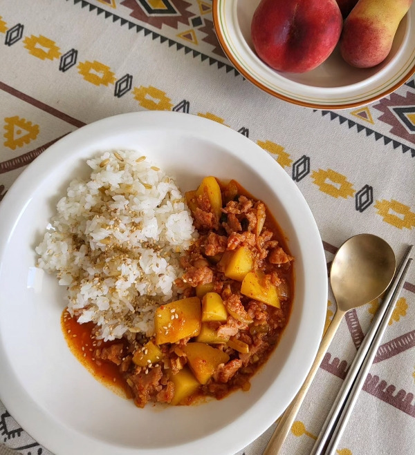 나른한 일요일 점심, 생리통이 심해서 약을 한 알 먹고 소파에 누웠다. 점심 메뉴를 고민하던 중에 그가 한국에서 먹었던 감자짜글이 얘기를 했다. '오늘 점심은 감자짜글이 먹을까?'