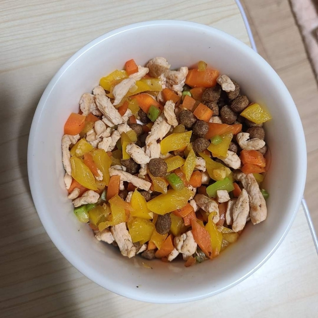 도솔이는 주 4일. 하루 40분 이상. 사계절 모두 어김없이 산책했으며, 하루 두 끼는 도솔이만을 위한 맞춤형 화식과 양질의 건사료를 블렌딩한 건강식으로 채워졌다.