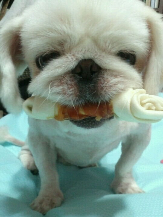 안면 골격이 가로로 넓어 치아구조가 특이한 페키니즈 품종의 도솔이는 이닦기 기가 만만치 않다. 더구나 페키니즈들은 황실견 출신으로 그 성격이 도도함의 극치여서, 자기가 하기 싫은 일엔 협조를 잘 안 해주는 에고이스트들이다. 매일의 양치가 매일의 실랑이였다.