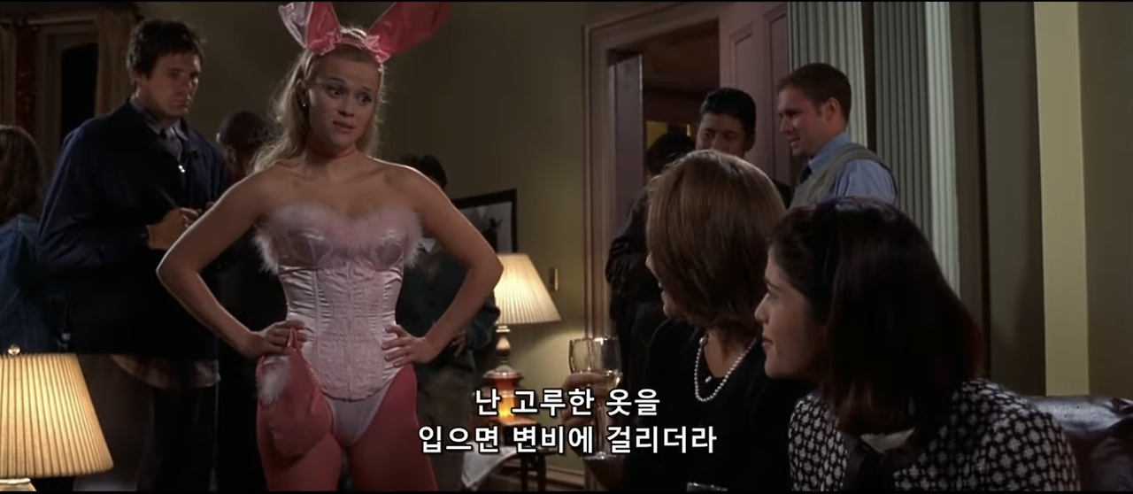 이 영화 원래 제목은 ‘Legally Blonde’, 의역하자면 ‘법도 모르는 금발의 백치’ 정도라고 한다. 주인공이 타인의 시선에 어떻게 비치는지를 관통하는 제목이다. 영화 시작부터 금발 머리 주인공은 늘 주변에서 외모 칭찬을 받고 있다.